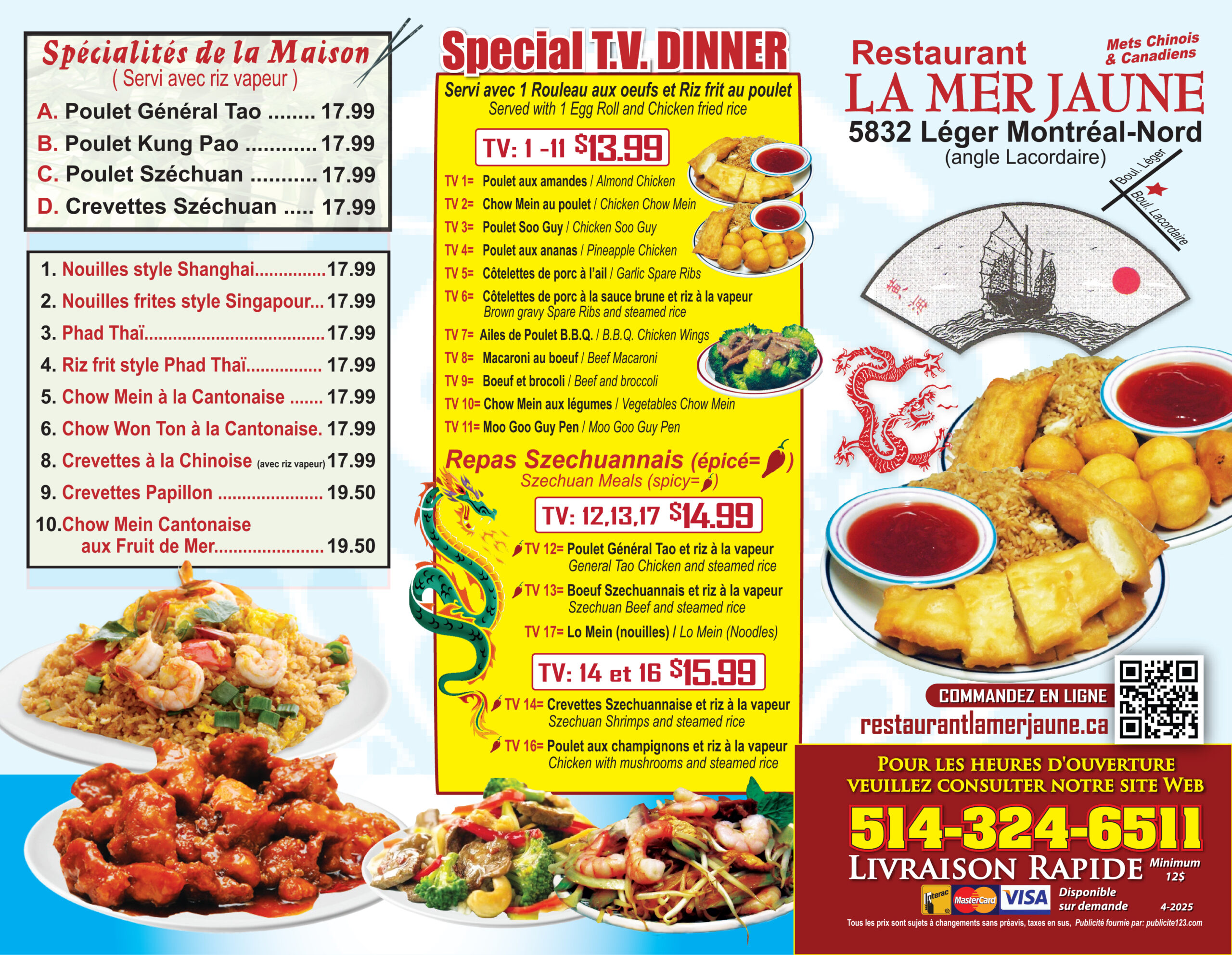 514-324-6511 VOIR Menu et COMMANDEZ Previous image Next image Bienvenue 5832 Bd LégerMontréal-NordQC H1G 1K6 514-324-6511